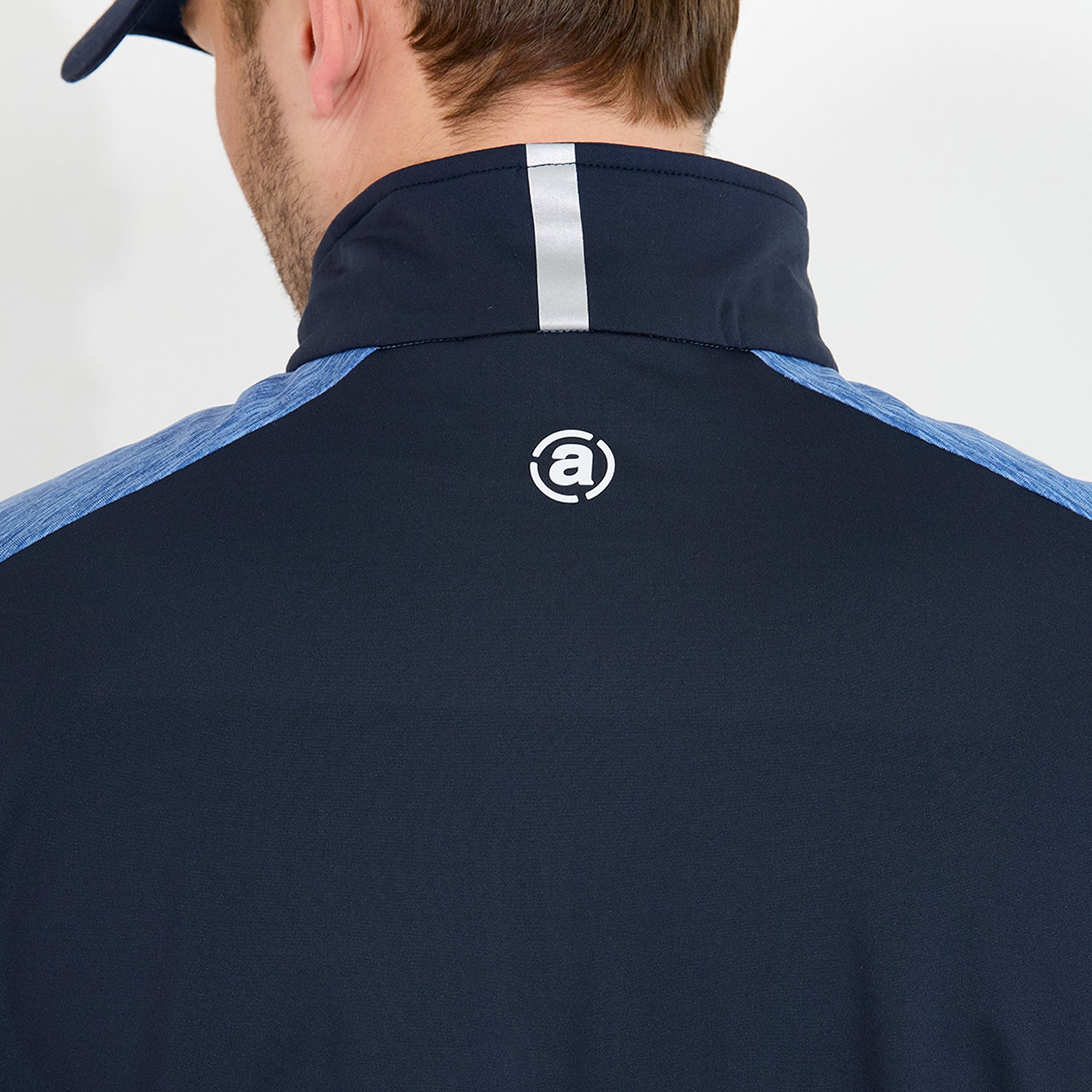 A hybrid vest that is extremely soft and flexible, perfect as an outer layer on a windy, but slightly warm day. The front and shoulders are in softshell fabric that is water-repellent and the surface treatment is PFC-free. The softshell fabric has a triangle pattern. The back is instead in a solid-colored stretchy fleece (which is brushed on the inside), which provides extra warmth. The vest has a half-day zipper at the front and two side pockets. The vest is a cool color explosion on the golf course with its blue, green and orange color combination.