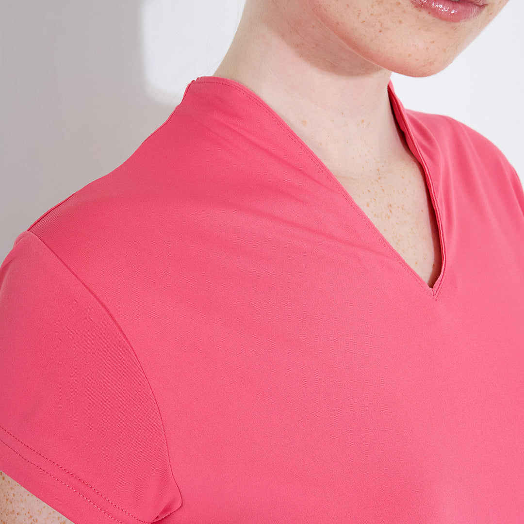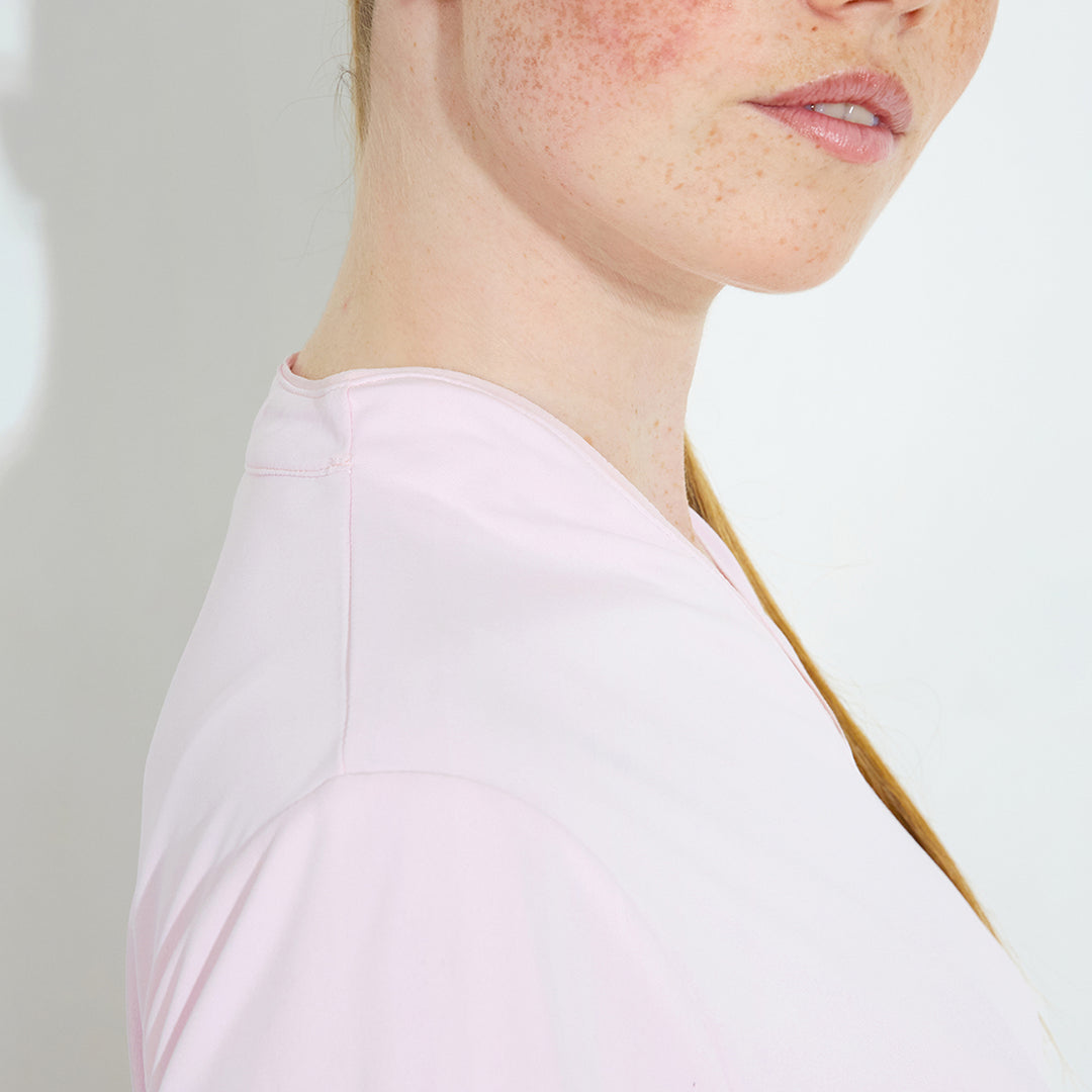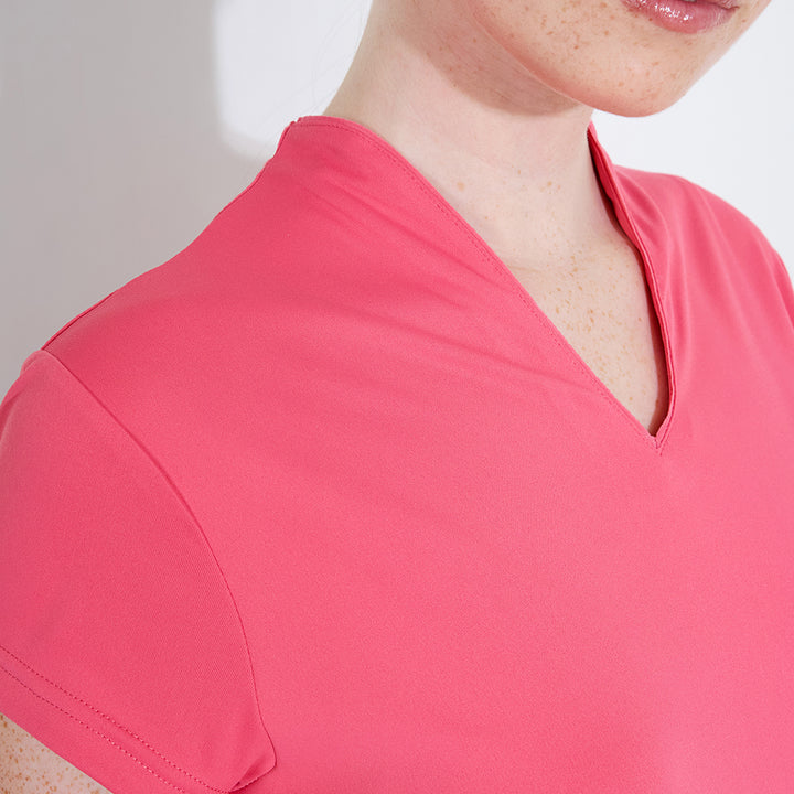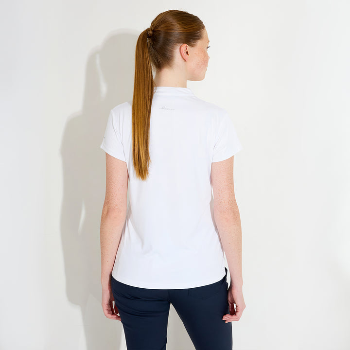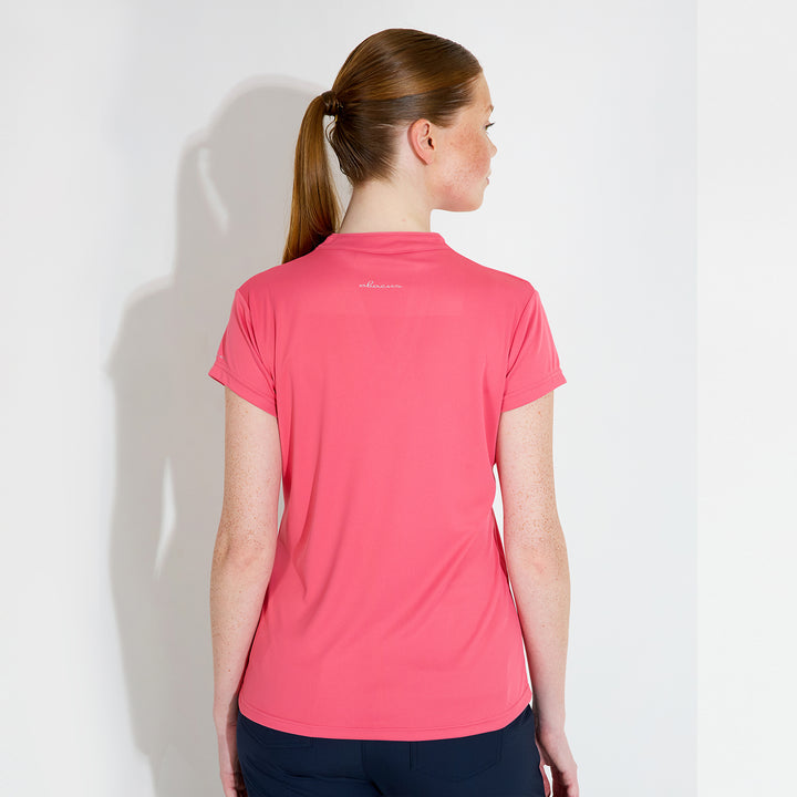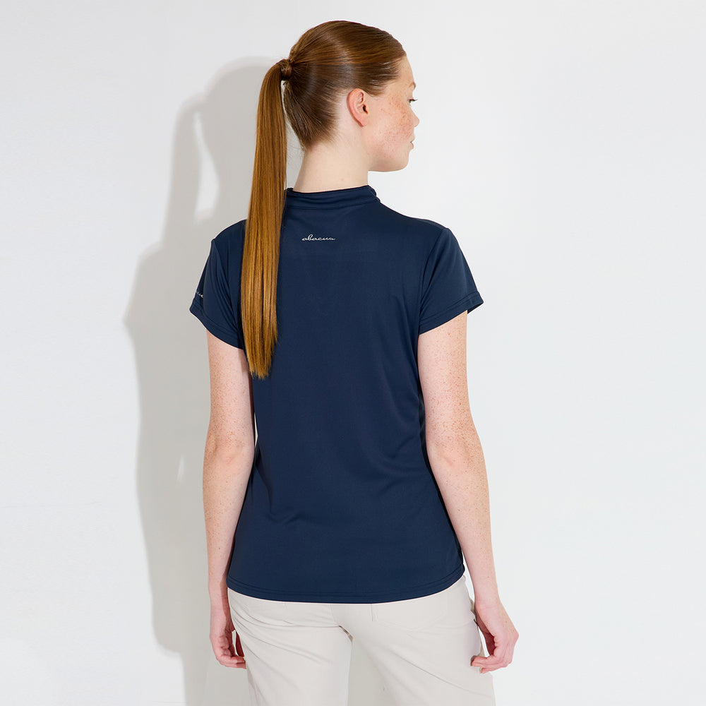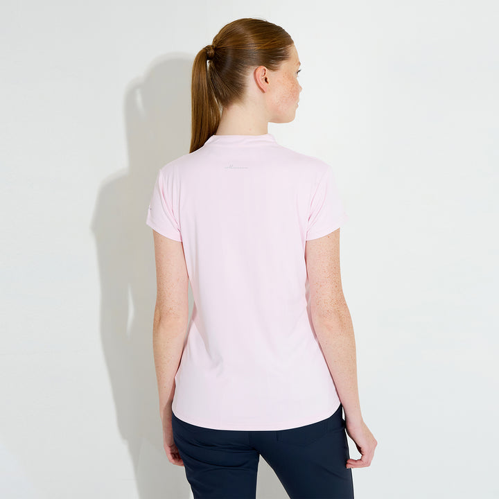 Hammel cupsleeve is made of soft and stretchy recycled polyester material. The top has DryCool properties and breathes very well. The V-neckline has a thin piping along the edge. Abacus logo on the back under the collar and on the left sleeve. This top is a dressy alternative to the regular pique with a collar.